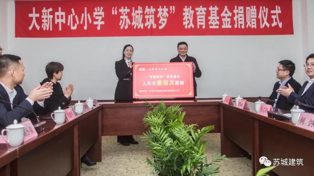 2月26日上午,蘇州市蘇城建筑安裝工程有限公司向大新中心小學(xué)捐贈(zèng)100萬(wàn)元,設(shè)立“蘇城筑夢(mèng)”教育基金,捐贈(zèng)儀式于張家港大新中心小學(xué)杏樓二層接待室舉行。